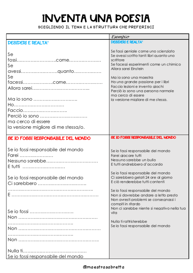 Lo scorso anno scolastico, durante la quarantena, ho proposto ai miei allievi un percorso di riflessione sull’uso del modo congiuntivo, modo condizionale e indicativo attraverso la poesia.