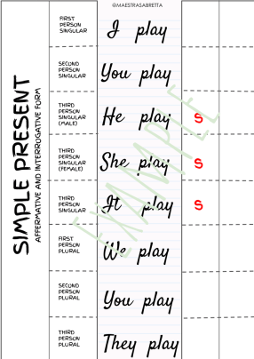 Vi mostro quello realizzato per la forma affermativa, negativa e interrogativa del Simple Present in lingua inglese.