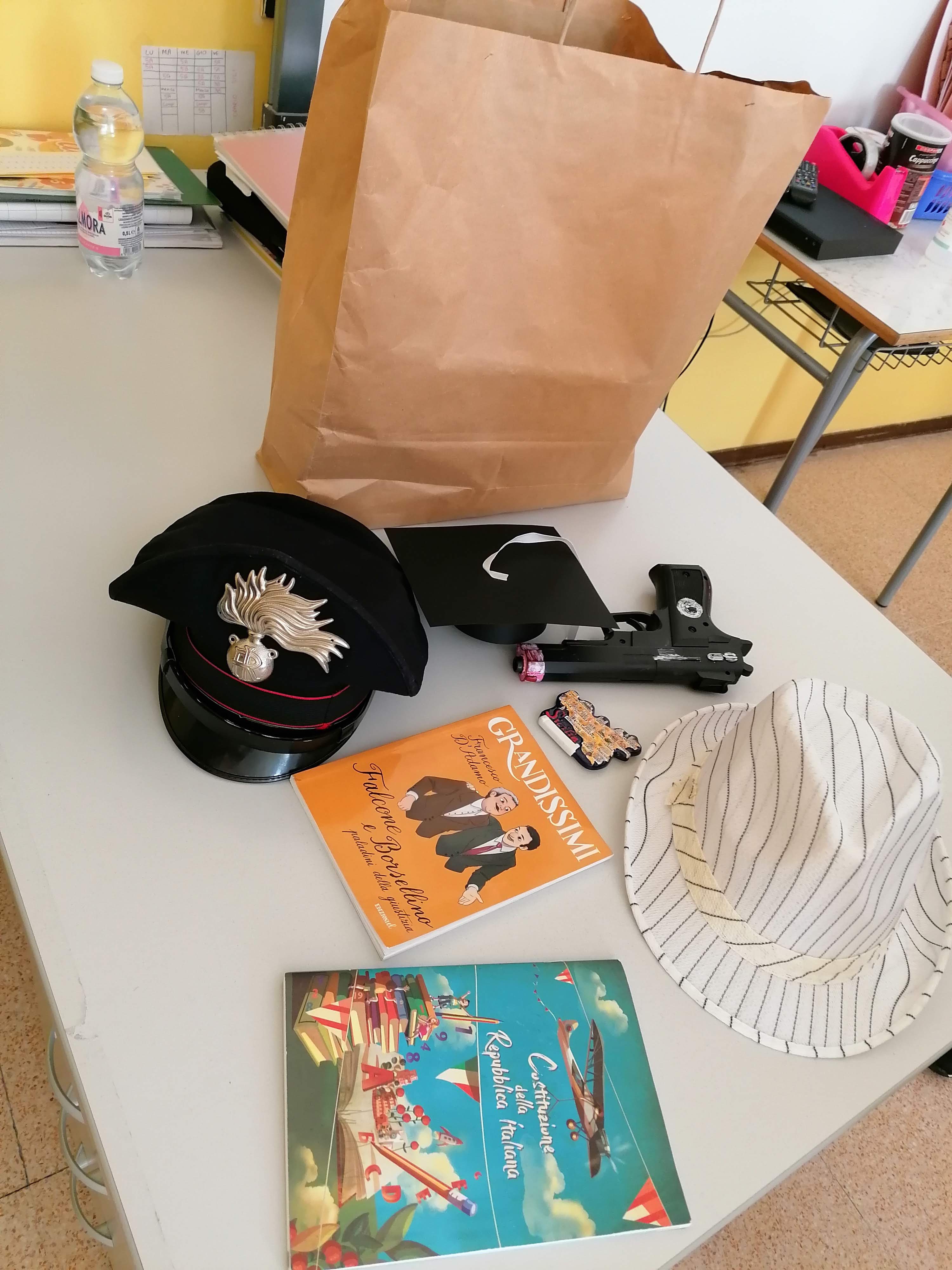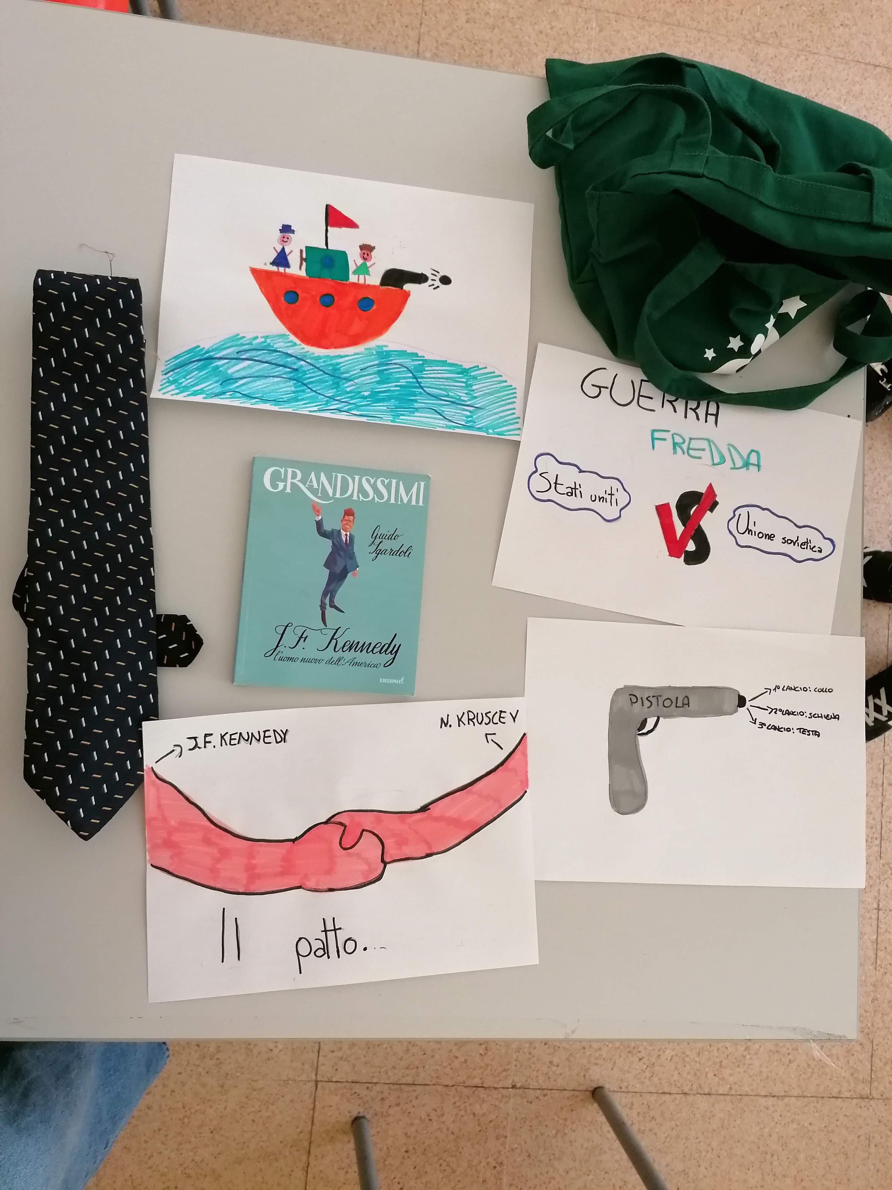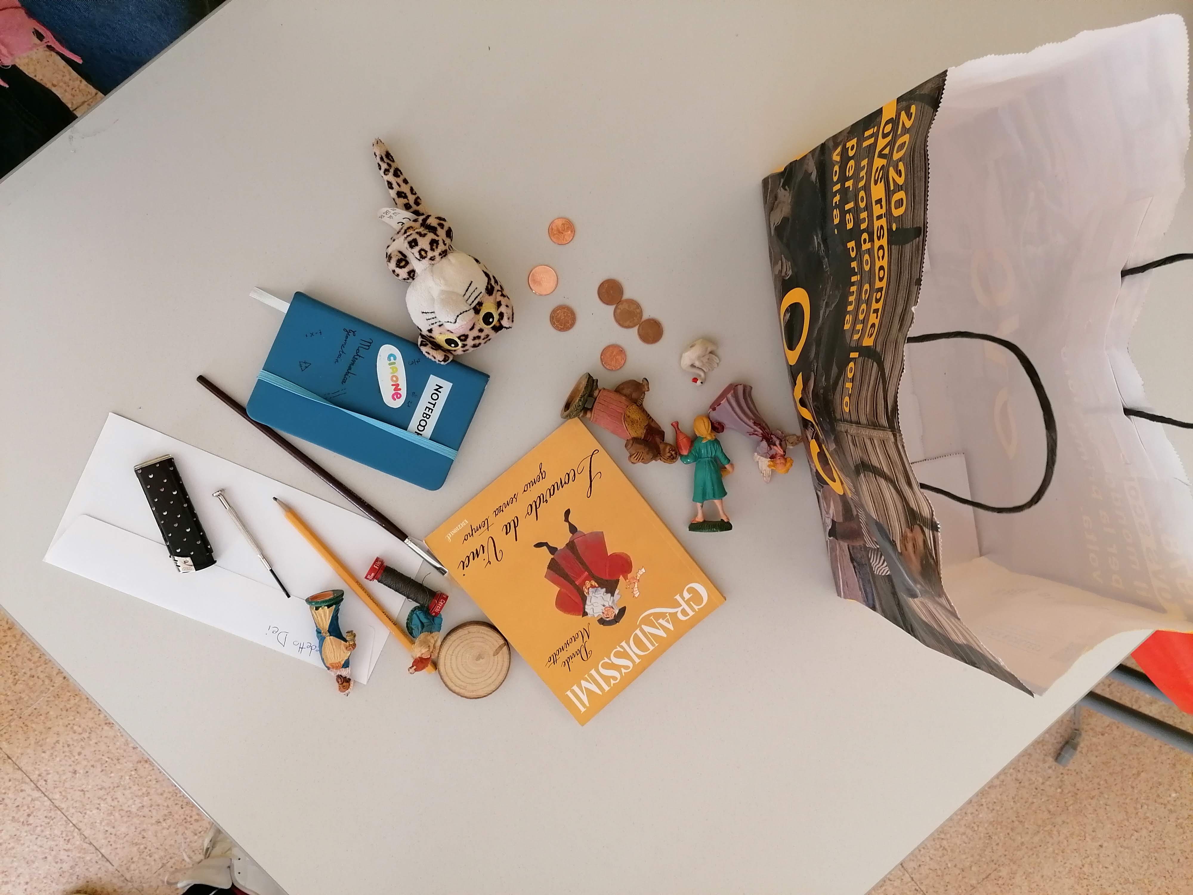 Nella consegna ho richiesto di preparare una borsa con oggetti rappresentativi di alcune caratteristiche o momenti importanti della vita del personaggio. Ho spiegato ai bambini che li avrebbero utilizzati e mostrati alla classe durante l’esposizione orale tirandoli fuori dalla borsa uno per volta.