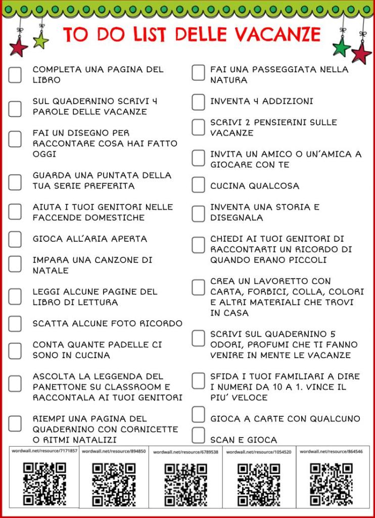 Grazie all’idea della maestra Anna Laura Cicchella ho realizzato anche io una To do list di attività, esercizi e giochi per i miei bambini di classe prima. Naturalmente non dovranno eseguire tutte le proposte, ma dovranno spuntare tutte quelle eseguite. Ho inserito varie attività per venire incontro ai gusti e alle attitudini di ogni bambino. Se vi fosse utile potete scaricare la mia to do list da qui: