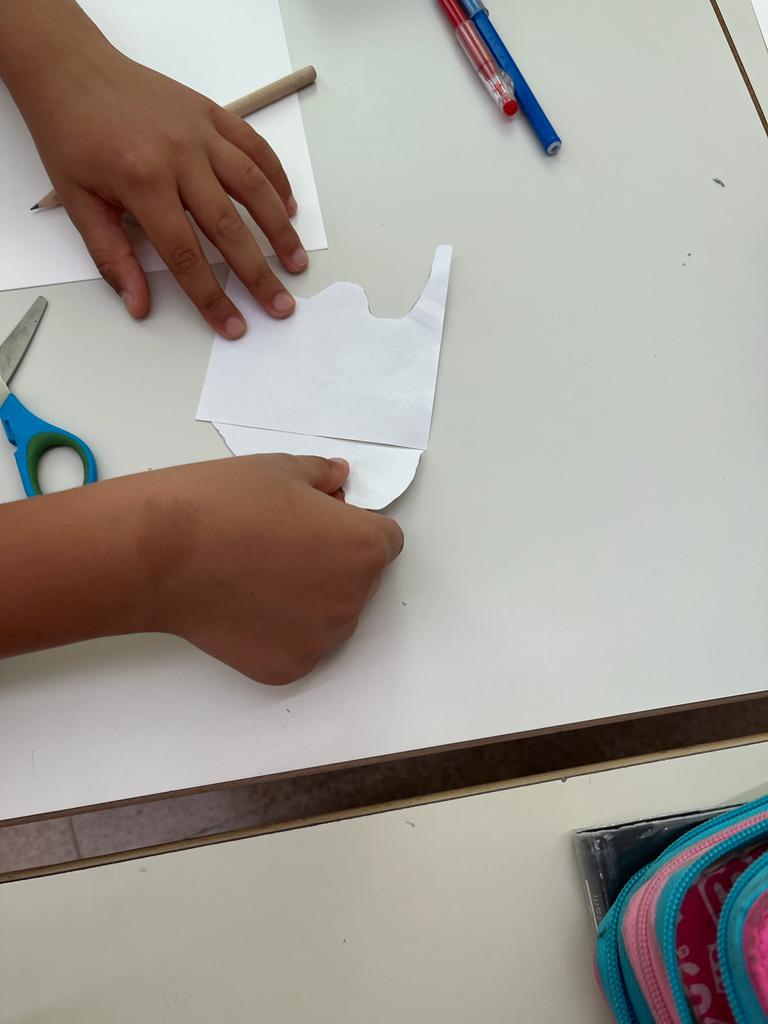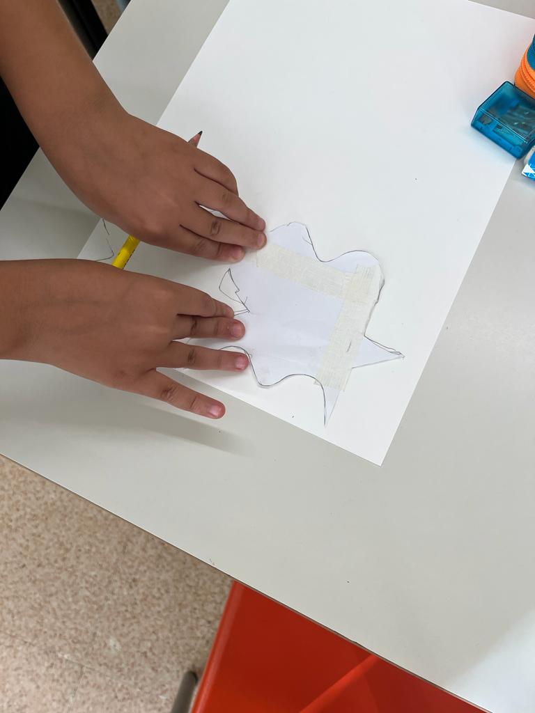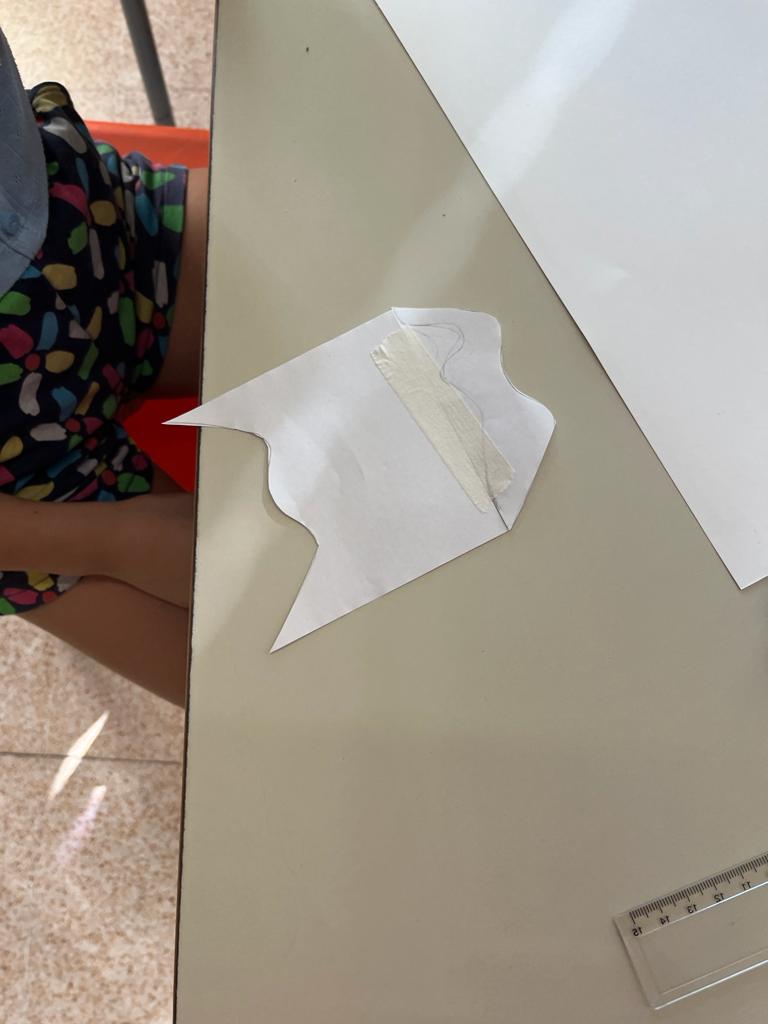 1. nel foglietto quadrato disegnare su un lato una linea ondulata e poi ritagliare il pezzetto per attaccarlo sul lato opposto con un pezzo di nastro adesivo. Ripetere la stessa operazione per gli altri due lati opposti. Creato il tassello posizionarlo sul foglio e tracciarne i contorni. Ripetere l’operazione incastrando il tassello come un puzzle facendolo coincidere con il disegno tracciato sul foglio.