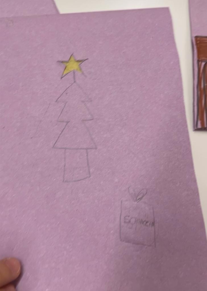 Distribuire il cartoncino colorato e piegato in due come un biglietto. Incollare il circuito all’interno. Nella parte esterna e frontale del biglietto con una matita fare un segno in corrispondenza del led e un altro in corrispondenza dell’angolo in cui premendo si attiva il circuito, poi inventare un soggetto che si illumini in corrispondenza del led (addobbi di Natale, finestra, porta, stella cometa, ecc).