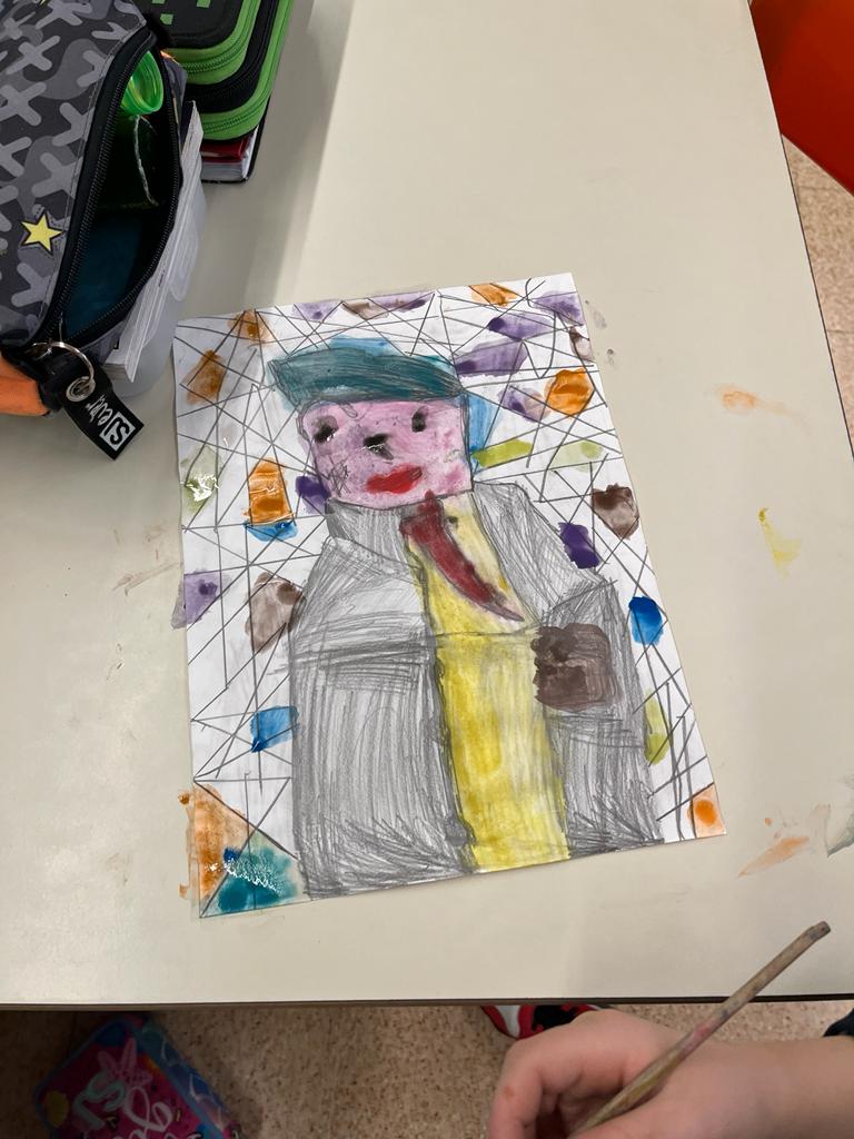 Avevo selezionato questo video, ma i bambini avevano già in mente come realizzare il proprio ritratto e quindi ho semplicemente lasciato l’immagine del quadro sulla smartboard e loro hanno creato la loro opera – tecnica: acquerello.