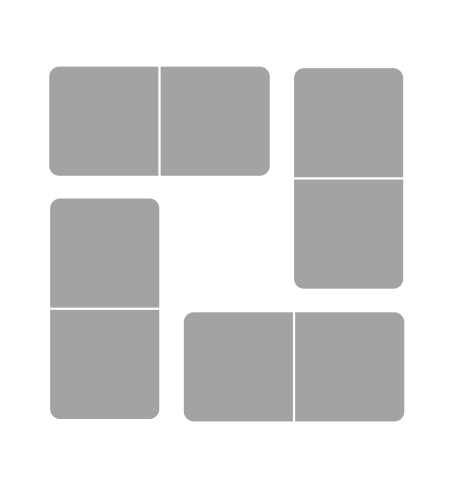 gioco di gruppo: 2 o più giocatori, a turno si girano 2 carte (una rettangolare e una quadrata) se la coppia è giusta allora si tiene. Vince chi ha più carte